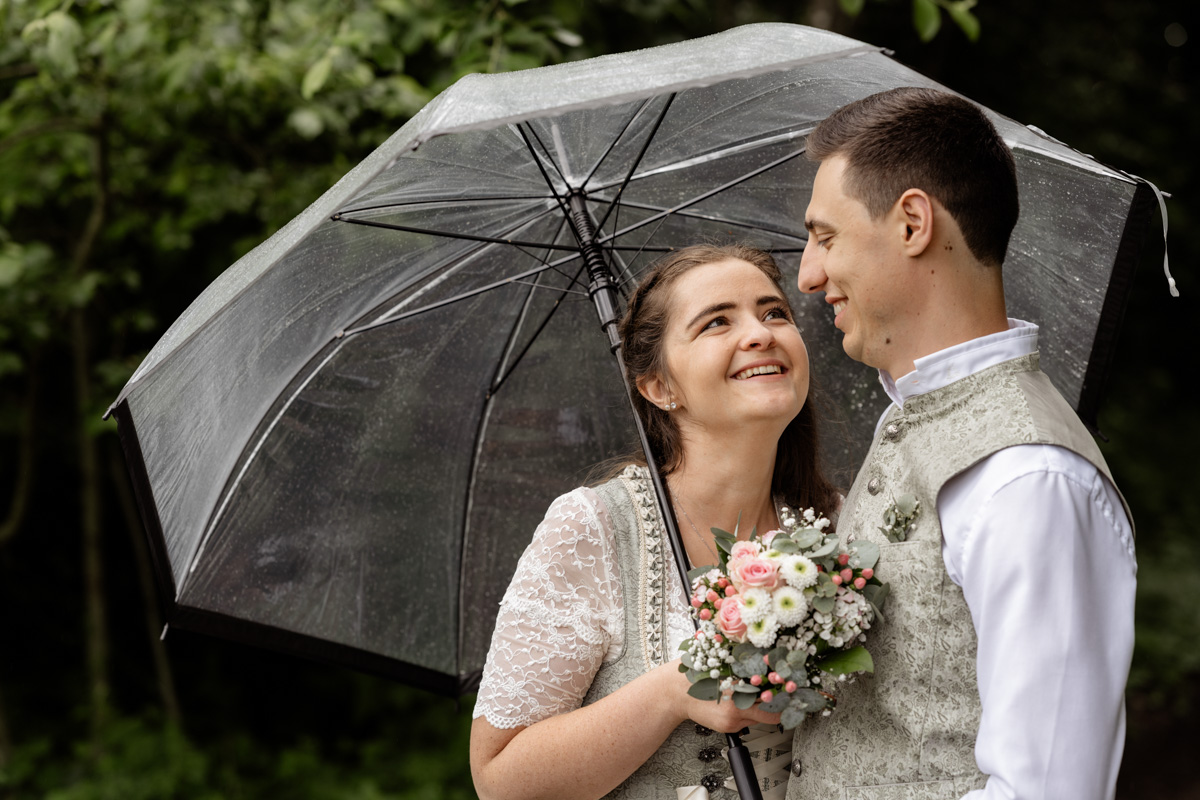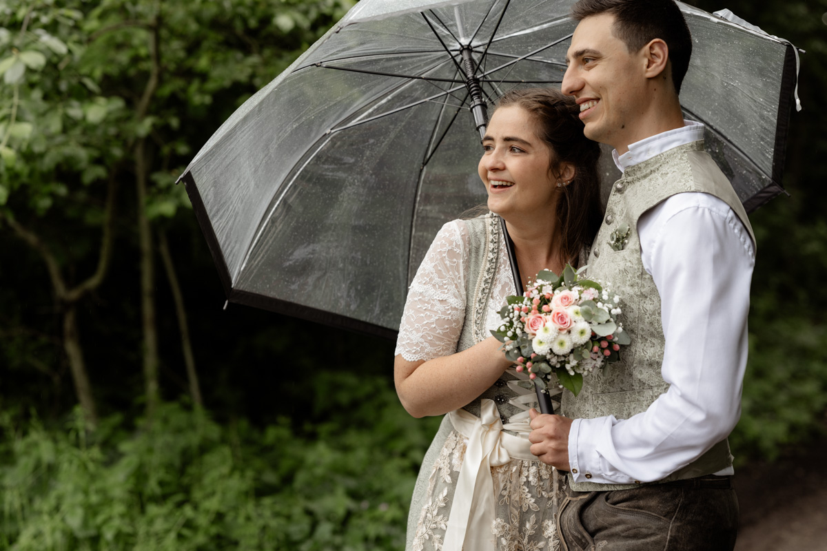Im Mai durfte ich ein herzliches Brautpaar fotografisch begleiten. Ein leichter Regen legte sich über den Tag, doch mit Schirm und der Leichtigkeit von Katrin und Maxi konnten wir mitten in der Natur wunderschöne Paarfotos festhalten. Die beiden waren entspannt, natürlich und voller guter Laune – genau so entstehen authentische Erinnerungen.