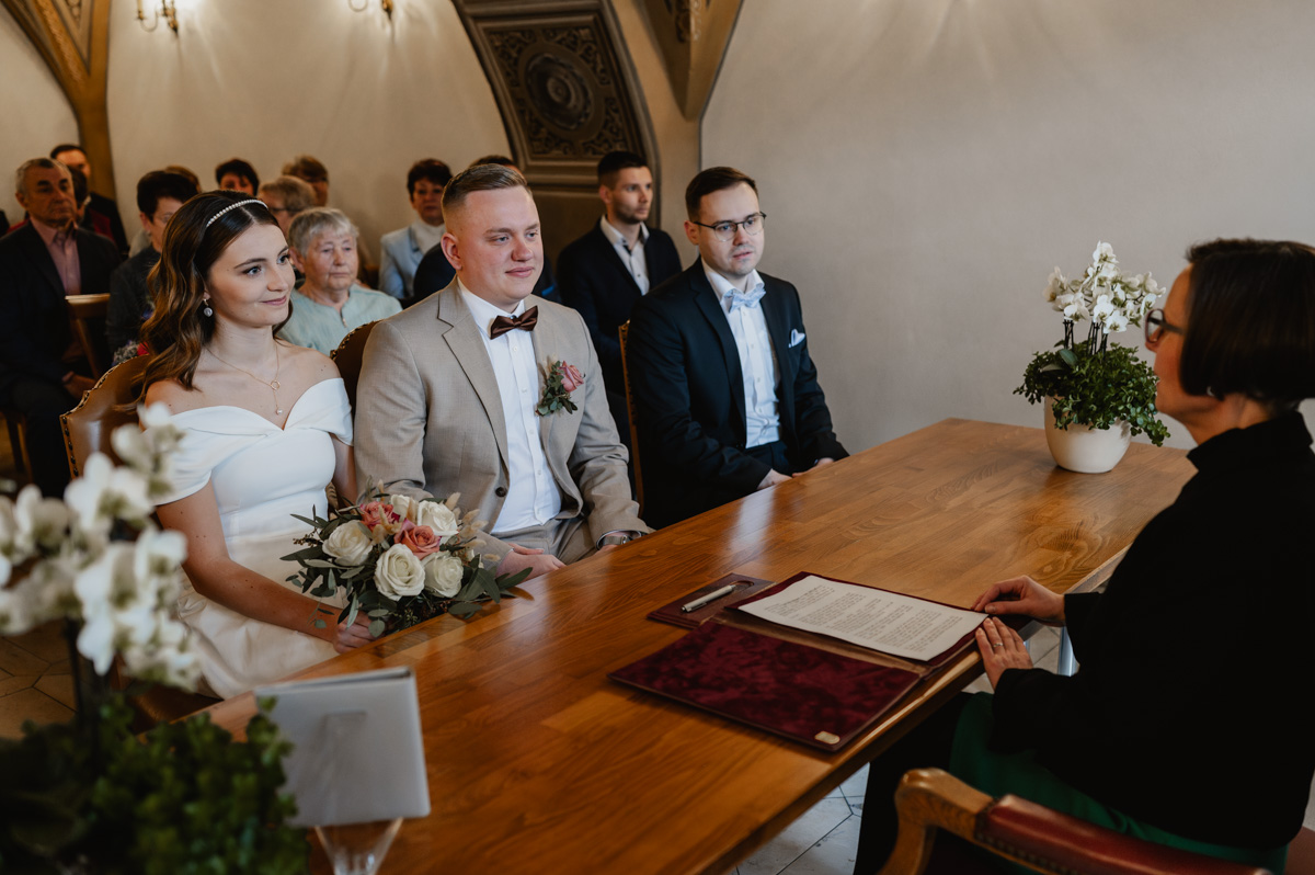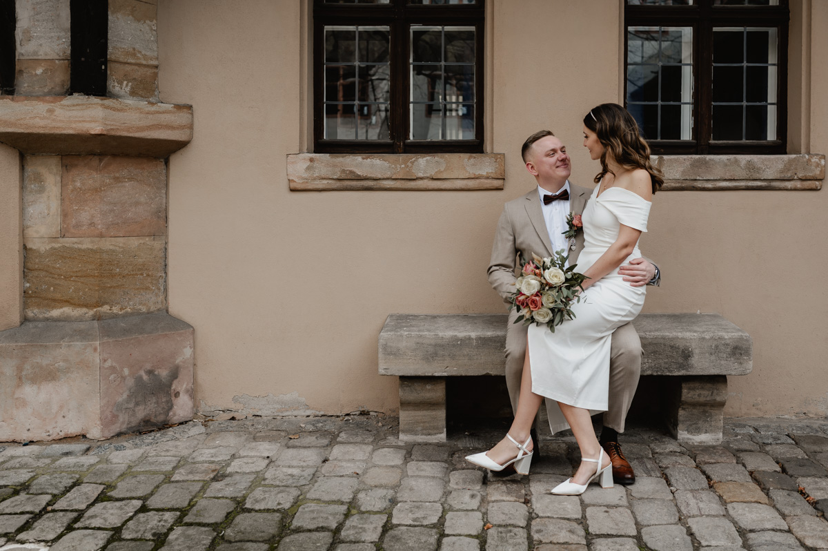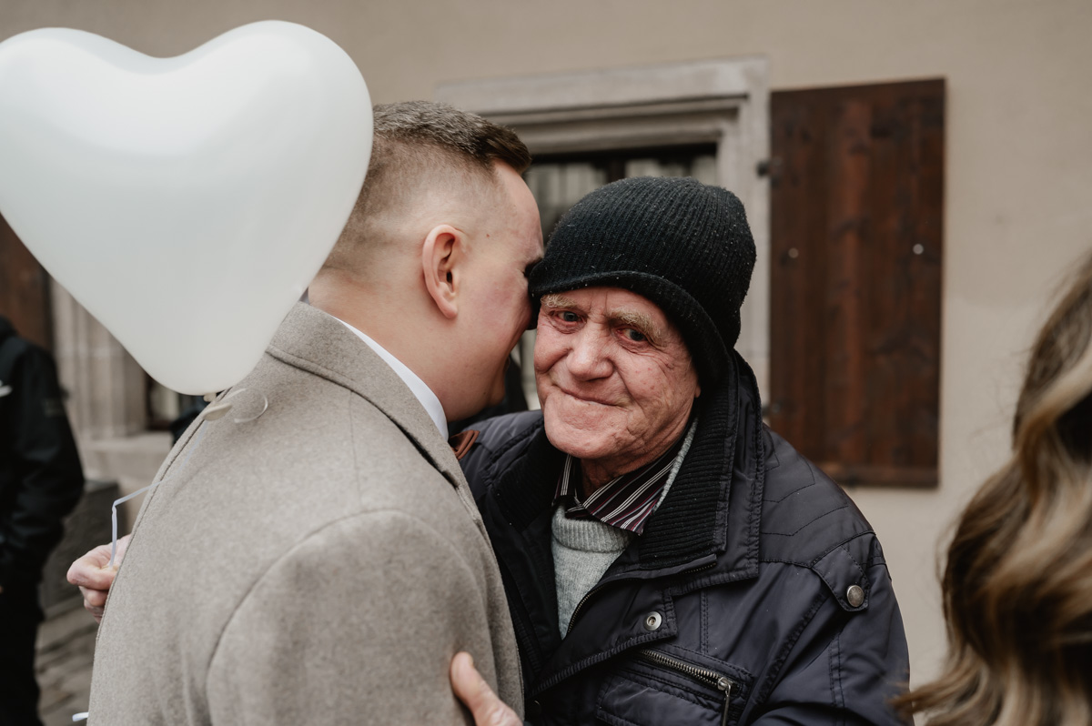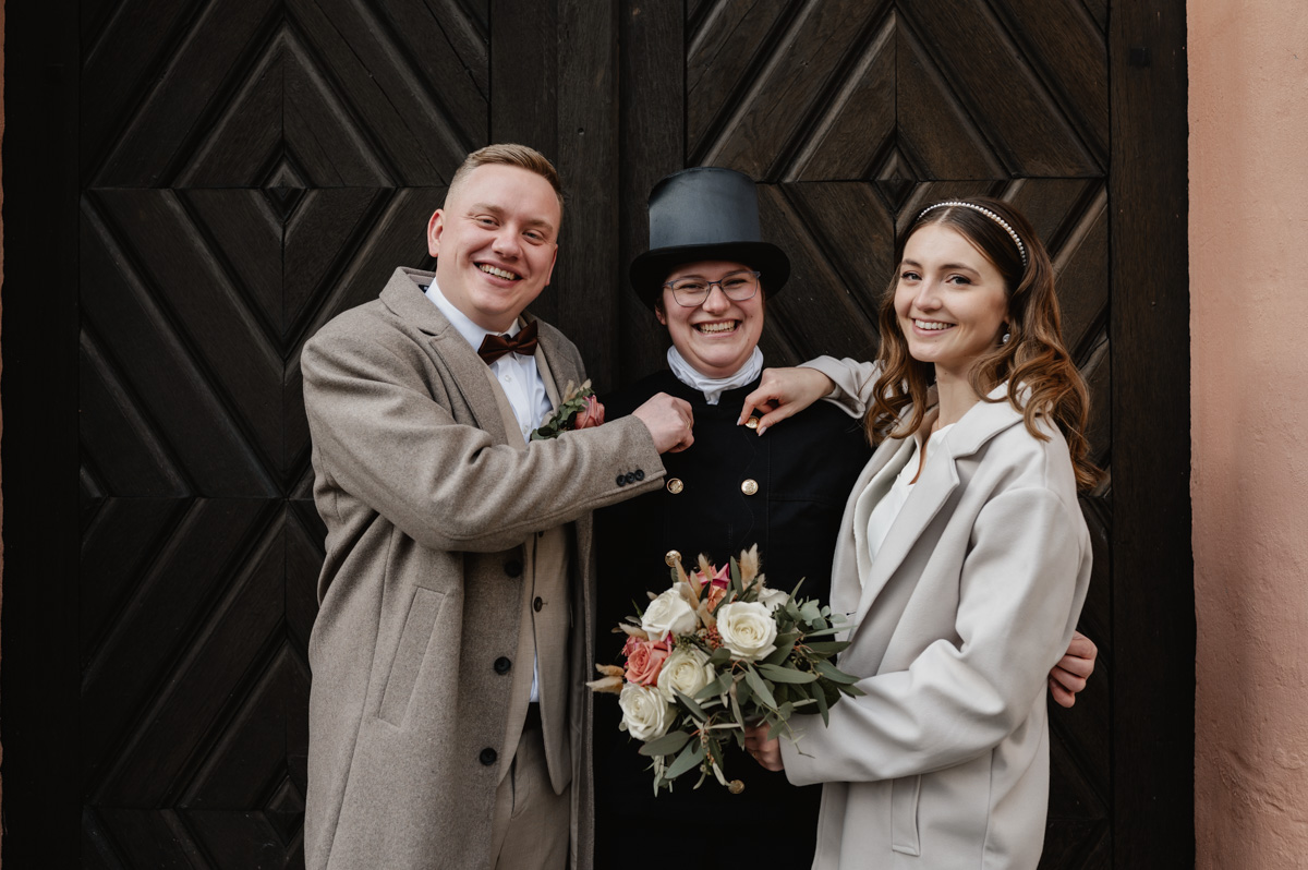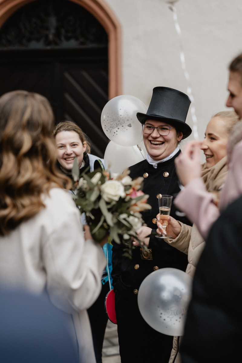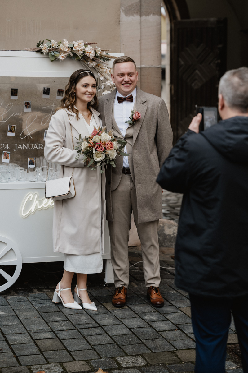 Anfang Januar durfte ich die standesamtliche Trauung von Lilia & Jörg begleiten. Zwei ganz herzlichen Menschen die sich im Schloss Ratibor in Roth das Ja-Wort gegeben haben. Trotz der winterlichen Kälte war die Stimmung warm und voller Freude – beim Sektempfang mit Glühwein wurde ausgelassen gelacht. Ein wundervoller Start ins gemeinsame Eheleben.