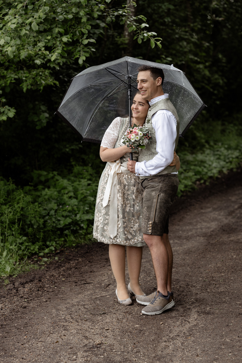 Im Mai durfte ich ein herzliches Brautpaar fotografisch begleiten. Ein leichter Regen legte sich über den Tag, doch mit Schirm und der Leichtigkeit von Katrin und Maxi konnten wir mitten in der Natur wunderschöne Paarfotos festhalten. Die beiden waren entspannt, natürlich und voller guter Laune – genau so entstehen authentische Erinnerungen.