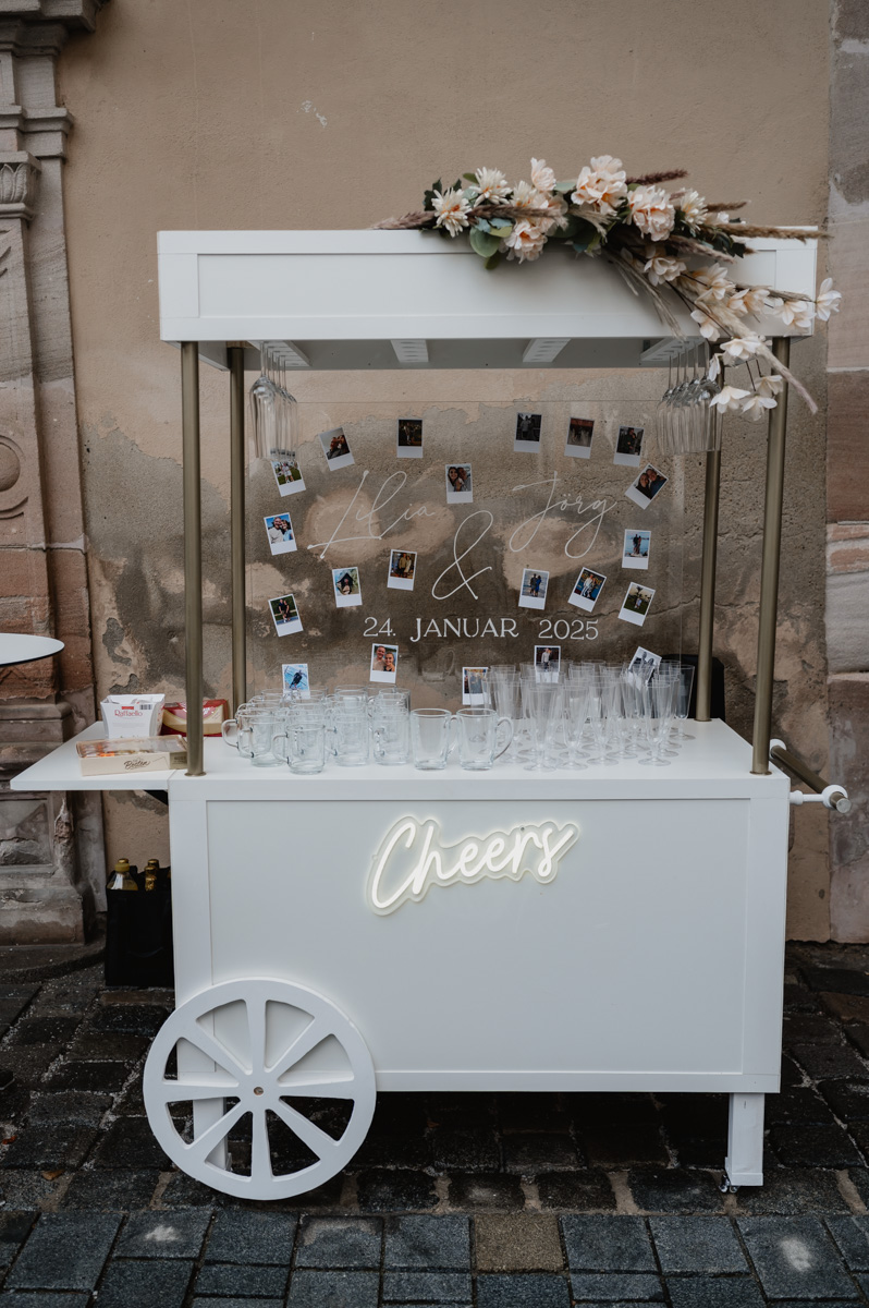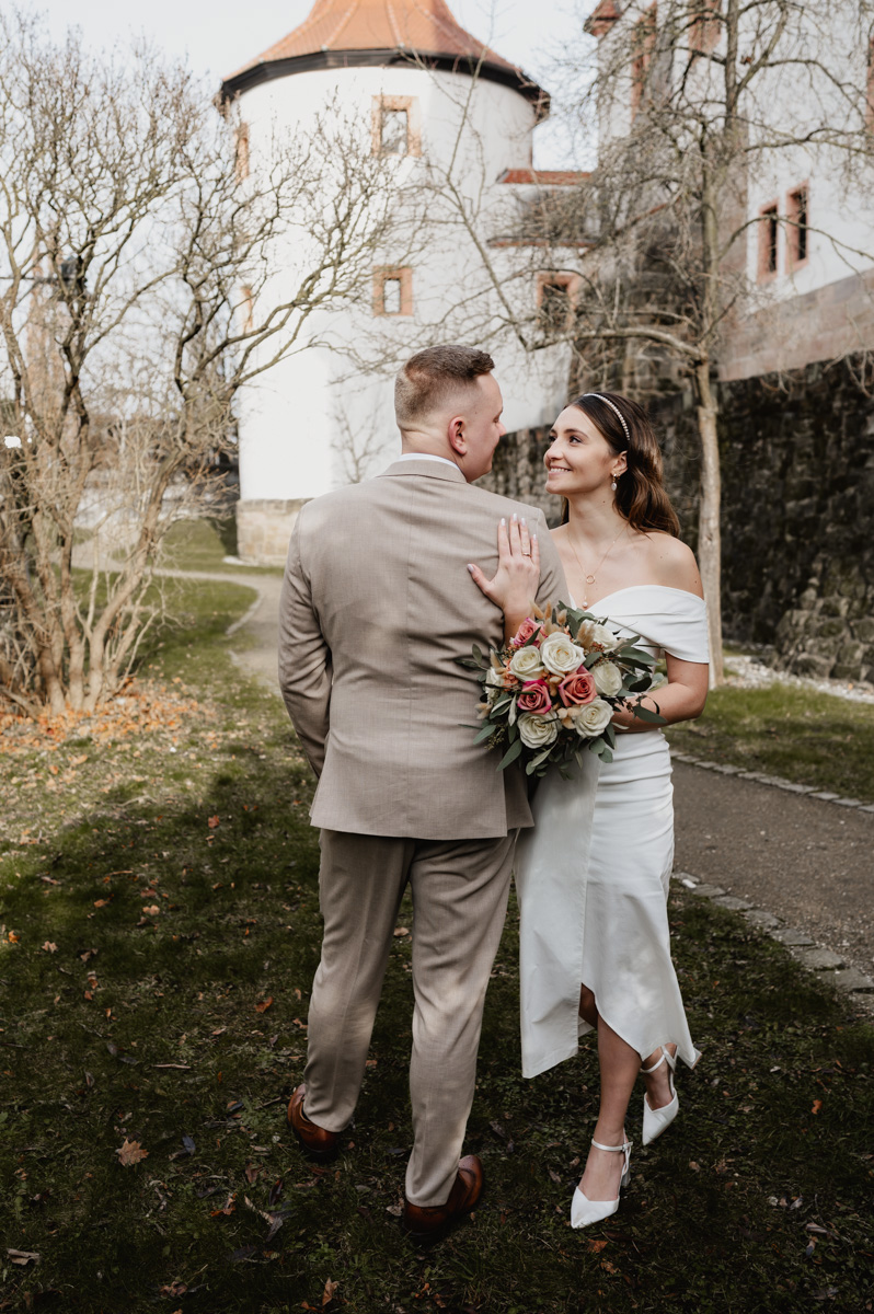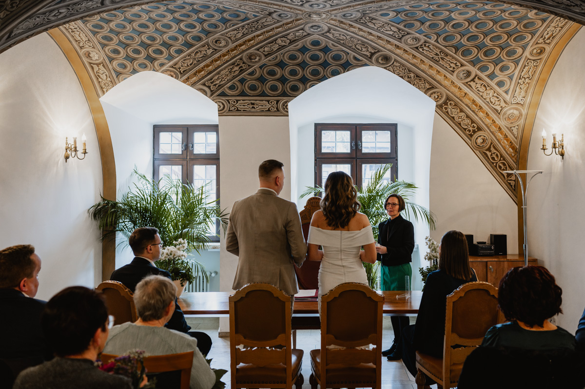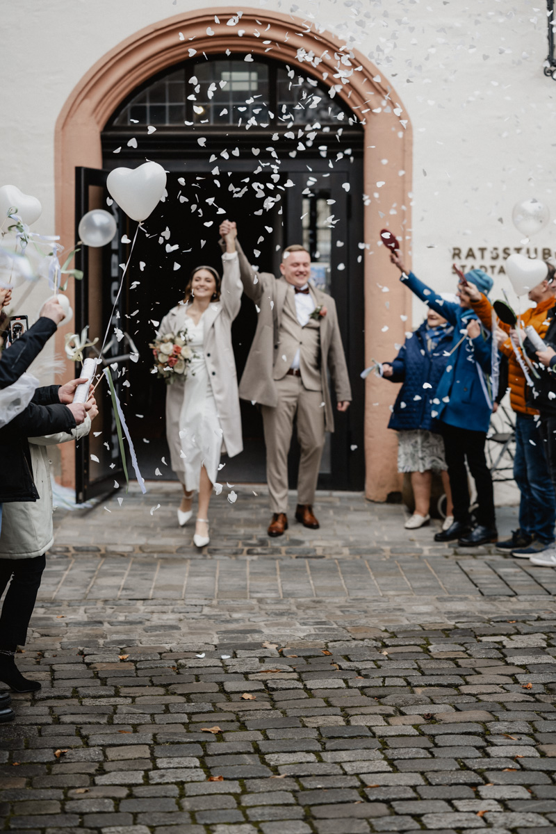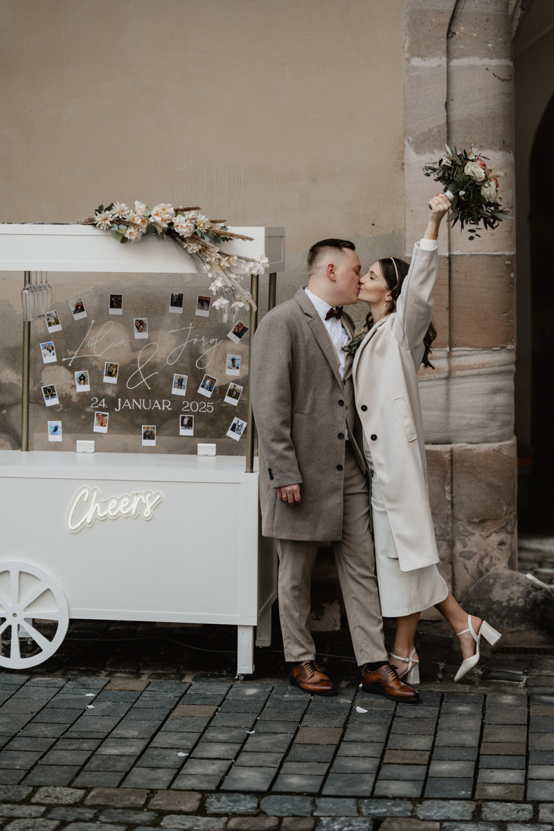 Anfang Januar durfte ich die standesamtliche Trauung von Lilia & Jörg begleiten. Zwei ganz herzlichen Menschen die sich im Schloss Ratibor in Roth das Ja-Wort gegeben haben. Trotz der winterlichen Kälte war die Stimmung warm und voller Freude – beim Sektempfang mit Glühwein wurde ausgelassen gelacht. Ein wundervoller Start ins gemeinsame Eheleben.
